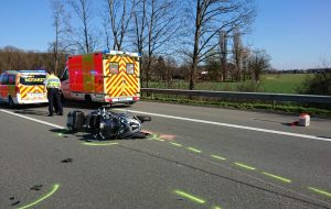 Ein Rollerfahrer ist auf der mittleren Spur auf der BAB2 in Fahrtrichtung Hannover schwer gestürzt. Die Feuerwehr unterstützte den Rettungsdienst und streute auslaufende Betriebsstoffe ab. Die Autobahn wurde während des Einsatzes und zur Unfallermittlung voll gesperrt. Zeitweilig staute sich der Verkehr bis Bielefeld Süd. |