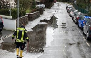 In der Lietholzstraße hat ein verstopfter Regenwassergully für eine überflutete Fahrbahn gesorgt. Auf einer Länge von circa 20 Metern bedeckte das Wasser Teile der Fahrbahn und des Gehweges. Die Feuerwehr entfernte den Schmutzfangkorb, anschließend lief das Wasser eigenständig ab.