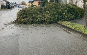 Durch starke Sturmböen ist im Industriegebiet der Max Planck Straße ein Baum auf die Fahrbahn gefallen, dieser wurde mit der Motorsäge zersägt und von der Straße entfernt. Ein weiterer, nebenan stehender Baum, drohte auch auf die Fahrbahn zu stürzen. Da dieser morsch war, ist er in Absprache mit der Polizei gefällt worden.