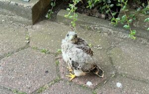 Auf dem Rückweg vom Einsatz EB 410, wurde die Drehleiter zu einer Tierrettung alarmiert. Ein junger Turmfalke war aus seinem Nest gefallen und lag nun hilflos am Boden. Eine Anwohnerin sah die Not des Tieres und alarmierte daraufhin die Feuerwehr.