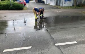 Die Leitstelle Lippe hat zu einem Wasserrohrbruch in die Hoffmannstraße alarmiert. Es handelte sich hierbei allerdings um einen verstopften Straßengully. Das Wasser vom Regenschauer der letzten Nacht floss dadurch nicht ab. Die Feuerwehr öffnete und reinigte den Gully und somit war der Wasserschaden behoben. |