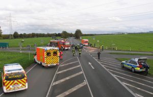 Die Bad Salzufler Feuerwehr ist am Samstagnachmittag zu einem schweren Verkehrsunfall auf die Ostwestfalenstraße in Höhe Hölsen alarmiert worden. Da die Lage zunächst nicht klar war, wurden neben den hauptamtlichen Kräften auch der Kommandienst und die Löschgruppe Retzen hinzugezogen. Die Feuerwehr stellte den Brandschutz an der Einsatzstelle sicher und streute auslaufende Betriebsstoffe ab. Im Rahmen der Amtshilfe wurde die Polizei bei der Unfallaufnahme unterstützt |