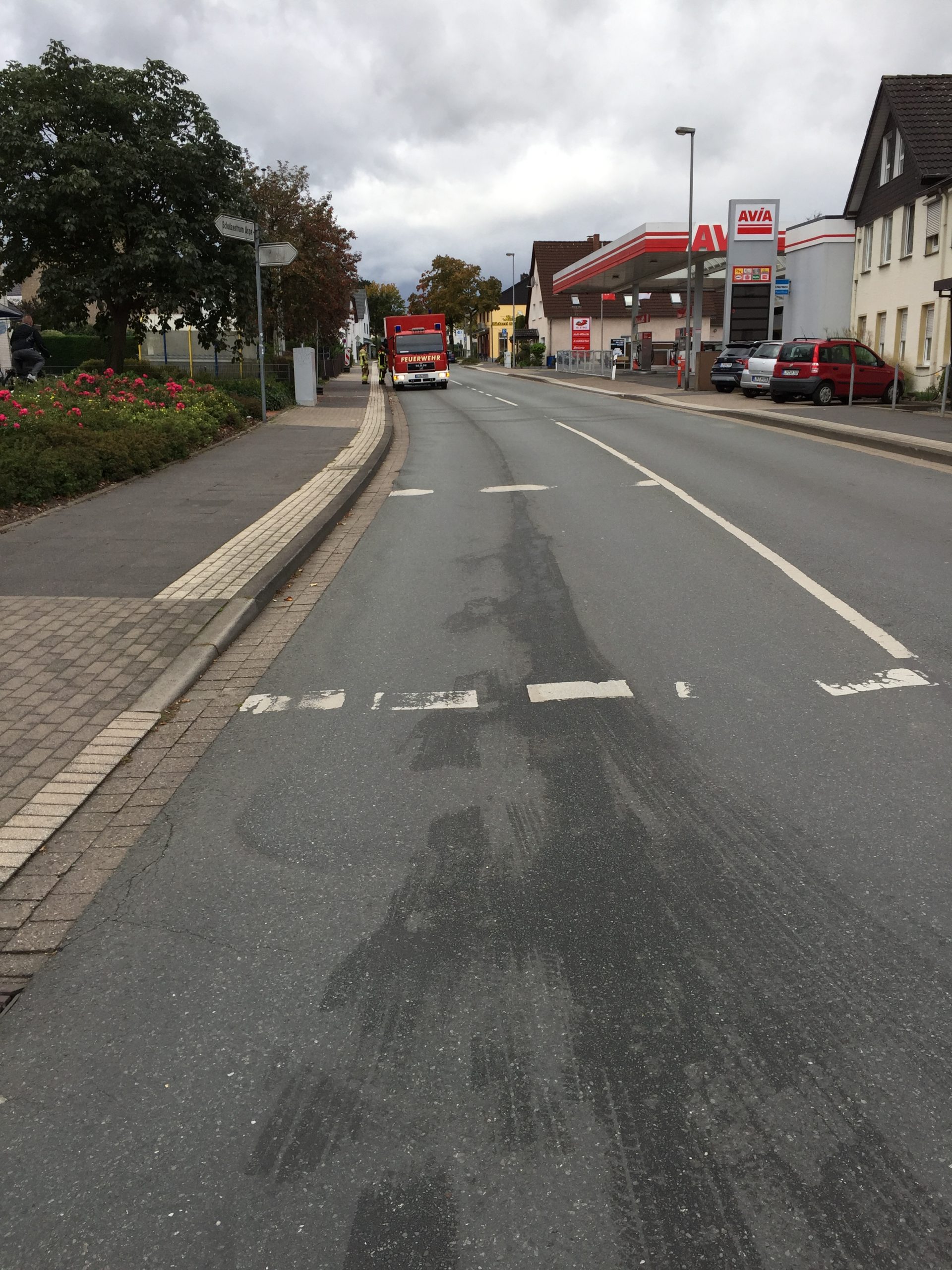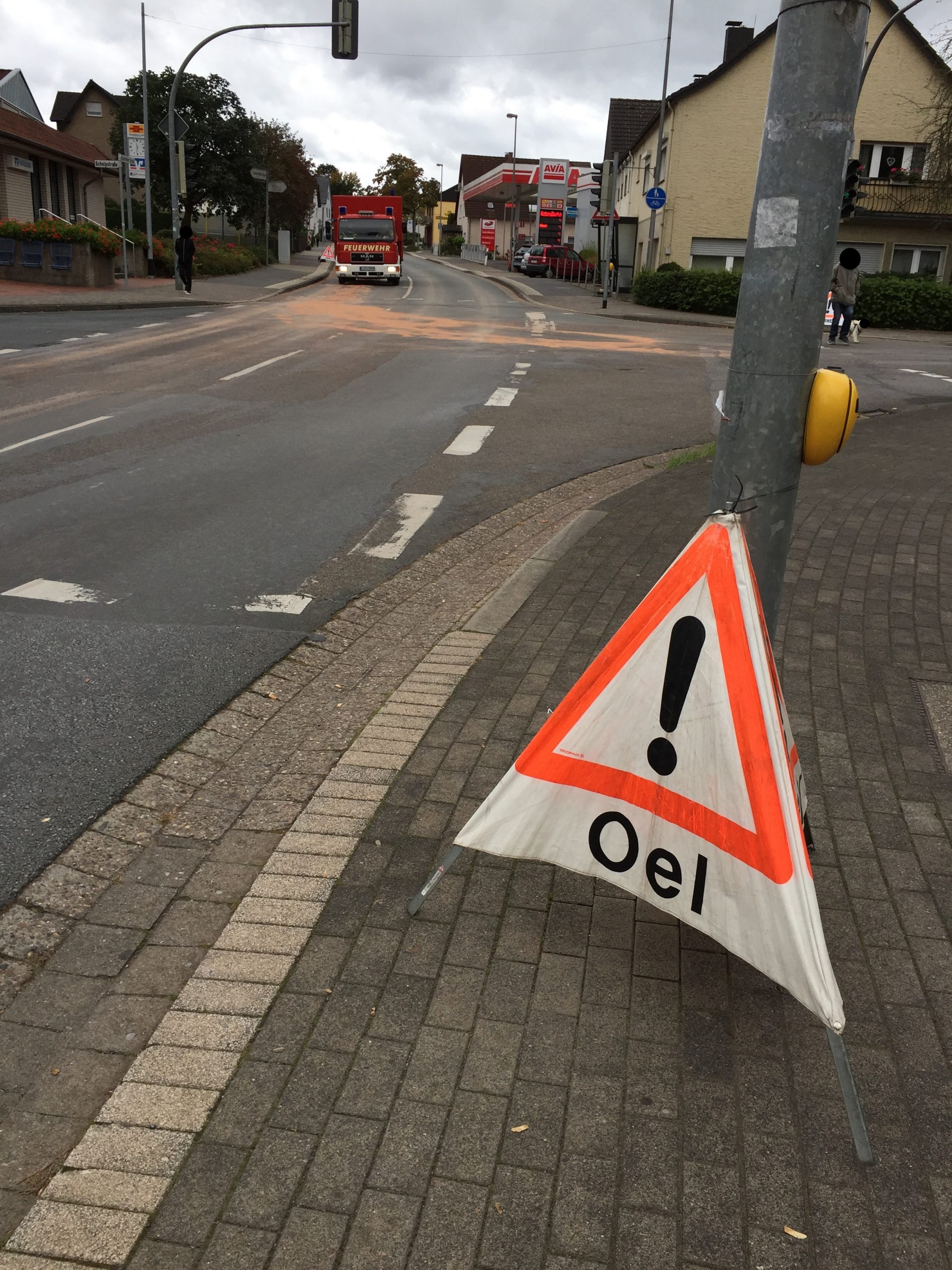 Im Kreuzungsbereich der Bielefelder Straße Ecke Paul-Schneider-Straße, wurde durch die Polizei eine Ölspur gemeldet. Vor Ort wurde die zum Teil schon eingetrocknet Spur, mit Bindemittel abgestreut und eigefegt. Um die Verkehrsteilnehmer auf die Ölspur und das verteilte Bindemittel hinzuweisen, wurde ein Warnbeschilderungen aufgestellt. Diese Beschilderung wird zu einem späteren Zeitpunkt wieder entfernt. |