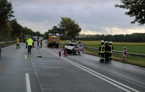 Auf der Ostwestfalenstraße sind am Dienstagmorgen zwei Autos frontal miteinander kollidiert. Die Feuerwehr wurde unter dem Einsatzstichwort „TH P-klemmt 1“ alarmiert. Vor Ort mussten zwei Menschen aus ihren Fahrzeugen befreit werden. In Absprache mit dem Rettungsdienst erfolgte bei beiden Patienten eine sogenannte Sofortrettung um keine Zeit zu verlieren, bei der schwere der Verletzungen. Durch den Löschzug Holzhausen wurde der Brandschutz sichergestellt. Für die Monobildaufnahmen der Polizei wurde der Teleskopmast der LG Bad Salzuflen nachalarmiert. Nach der Unfallaufnahme wurde die Einsatzstelle durch die Feuerwehr gereinigt, sowie auslaufende Betriebsstoffe abgestreut. Etwa vier Stunden nach Alarmierung konnte die Feuerwehr wieder einrücken. |