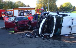 Gemeldet wurde ein Verkehrsunfall mit einer eingeklemmten Person im Ortsteil Werl-Aspe. An der Einsatzstelle waren 2 PKW frontal ineinander gefahren, einer lag auf der Seite. Es war keine Person eingeklemmt. Eine Person war selbständig aus dem Auto geklettert, die zweite wurde betreut, bis der Rettungsdienst eintraf. Es wurden die Batterien abgeklemmt, Unfallfolgen beseitigt und der Rettungsdienst bei seinen Maßnahmen unterstützt. Der LZ Schötmar Werl-Aspe blieb so lange an der Einsatzstelle, bis die Kreuzung komplett geräumt war. |