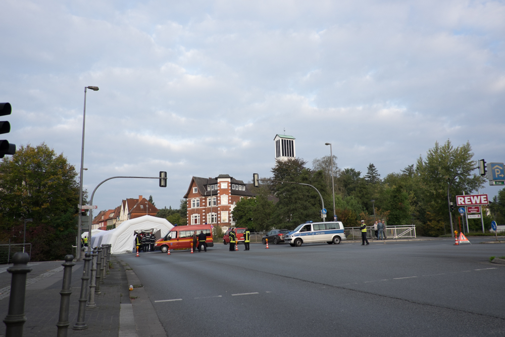 Bei Großveranstaltungen in der Stadt Bad Salzuflen bietet sich die Bahnhofstraße als ein geeigneter Aufstellplatz für den Behandlungsplatz (BHP 50) an. Daher wurde hier auch am frühen Sonntagmorgen geübt, wozu die Bahnhofstraße kurzzeitig gesperrt werden musste. Im Ernstfall könnten hier 50 Verletzte bzw. Erkrankte pro Stunde nach Sichtung notfallmedizinisch versorgt werden.